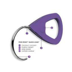 Cada empaque estéril (kit) contiene dos dispositivos CorKnot de 17 cm de largo (4 mm de diámetro interno) para cirugías abiertas y 12 objetivos púrpuras; para el caso de mínima invasión cuenta con 2 dispositivos de 31 cm de largo (5 mm de diámetro interno) igual con 12 objetivos púrpuras. Se cuenta con paquetes de objetivos púrpura adicionales en empaque de 6 o individuales.